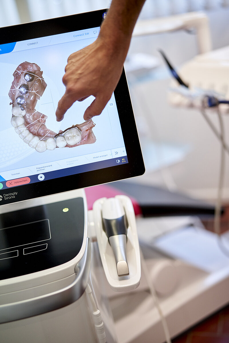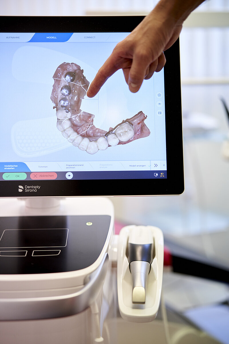 Sicher haben Sie schon einmal Bekanntschaft mit einem Abdrucklöffel gemacht. Egal ob Sie eine Krone, ein Inlay, eine Knirscherschiene oder eine Zahnspange bekommen: Für viele Behandlungen ist ein Modell Ihrer Zähne unerlässlich. Aber geht das nicht auch ohne minutenlanges Beißen auf Abdruckmasse und einen verkrampften Kiefer? Allerdings! Mit einem Intraoralscanner können wir die Abformung Ihrer Zähne schnell, präzise und digital erstellen. Ein digitales Modell so präzise wie eine herkömmliche Abformung. Zudem kann die Qualität des Modells direkt am Bildschirm begutachtet werden.